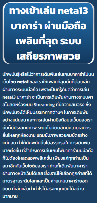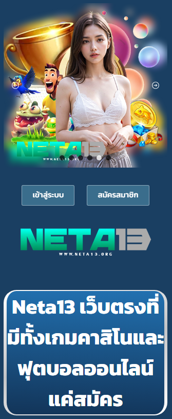 neta13 คือสล็อตเว็บตรงไม่ผ่านเอเย่นต์ ที่ให้บริการตลอด 24 ชั่วโมง รวมเกมสล็อตออนไลน์จากค่ายดังทั่วโลก มีเกมให้เลือกเล่นมากกว่า 2,000 เกม ระบบฝาก-ถอนอัตโนมัติรวดเร็วภายใน 10 วินาที พร้อมโปรโมชั่นและโบนัสมากมาย เหมาะสำหรับทั้งมือใหม่และมือโปร ทำไมต้องเล่นสล็อตกับ neta13? เพราะเราเป็นสล็อตเว็บตรงที่มีความมั่นคงสูงที่สุด ได้รับใบอนุญาตถูกต้อง ระบบปลอดภัย มีมาตรฐานสากล เรามุ่งมั่นให้บริการที่ดีที่สุดแก่สมาชิกทุกท่าน พร้อมแจกเครดิตฟรีและโบนัสต้อนรับสมาชิกใหม่ทุกวัน